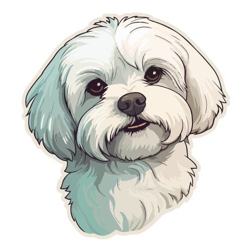 Ritratto di un cane bianco con pelo riccio, occhi marroni e naso nero.